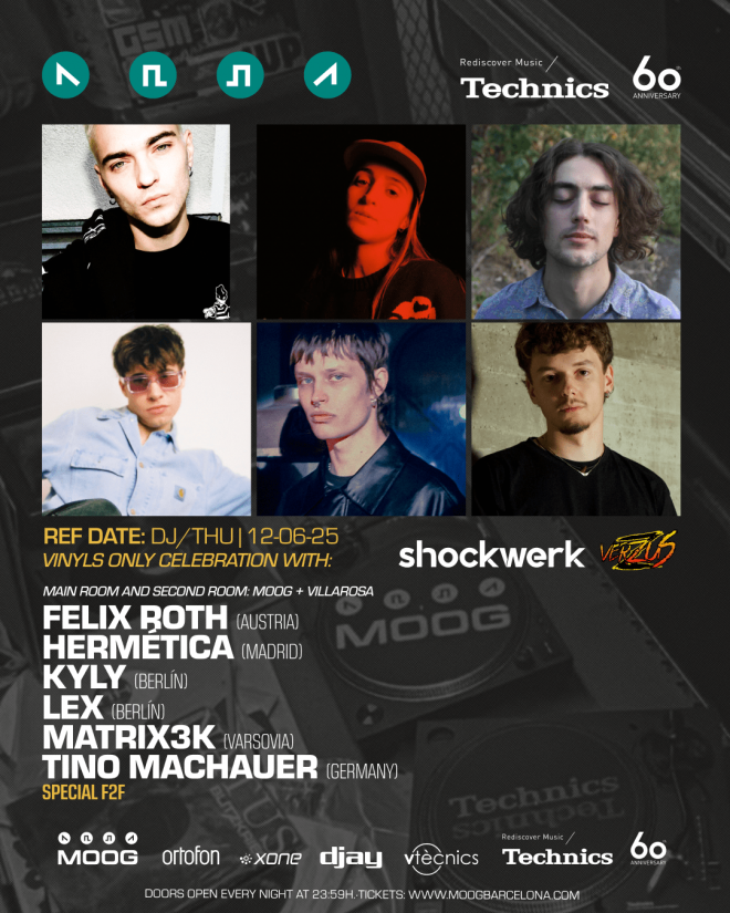 Sala Principal (Moog)+ Segunda Sala (Villarosa): SHOCKWERK/VERZUS, un evento colectivo que reúne a FELIX ROTH, HERMÉTICA, KYLY, LEX, MATRIX3K y TINO MACHAUER, con un especial «Face to Face».