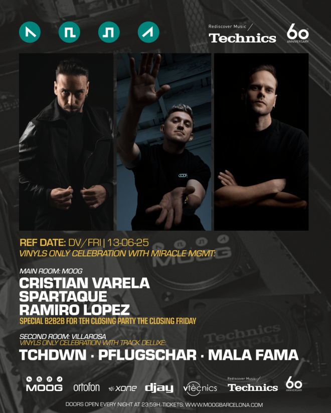 Sala Principal (Moog): Cierre de altura con CRISTIAN VARELA, RAMIRO LOPEZ y SPARTAQUE, en un inédito B2B2B auspiciado por Miracle MGMT.